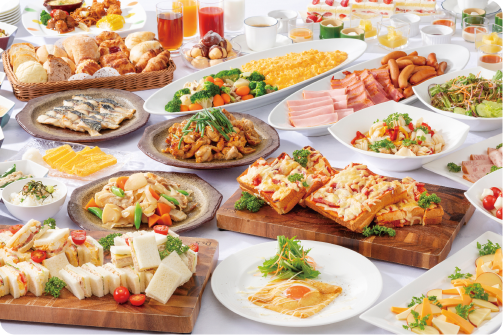 ✔ 洋食・和食あわせて 約90種類 の多彩なメニューが揃うビュッフェ